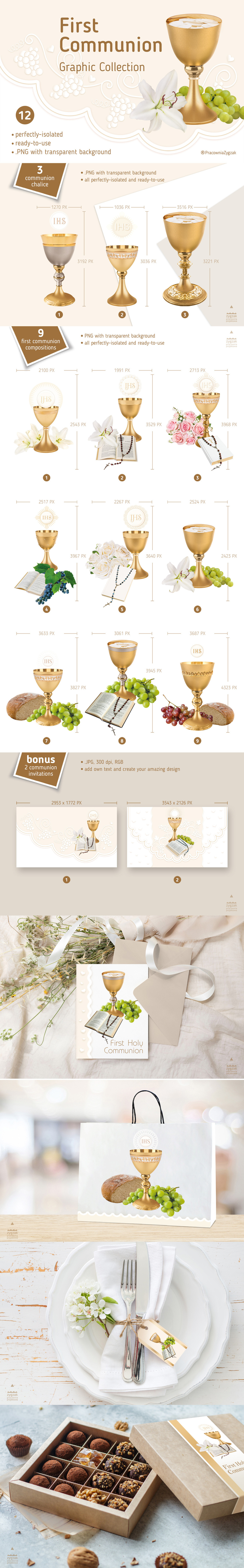 - 9 pre-made first holy communion compositions (.PNG with transparent background, 300 dpi, RGB)